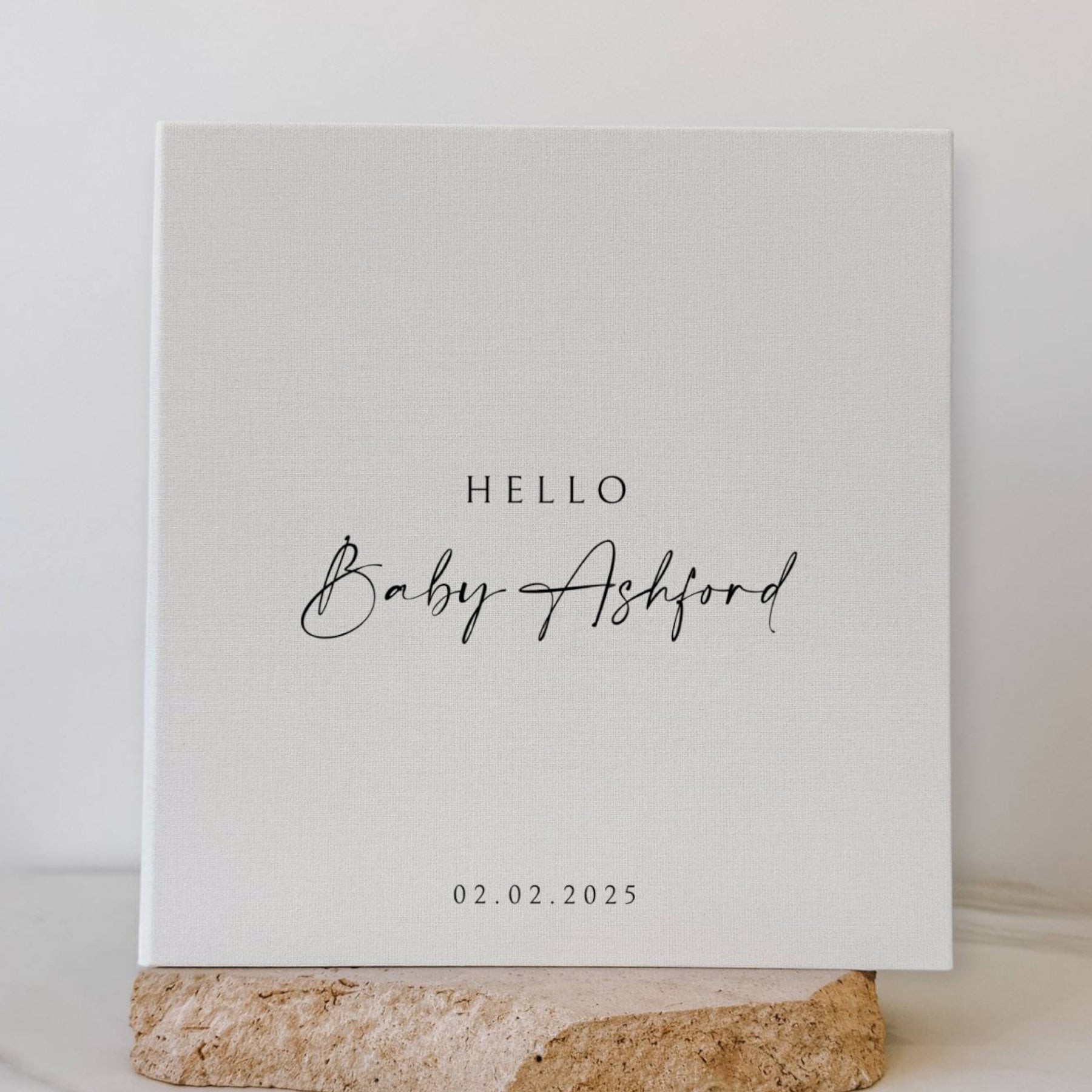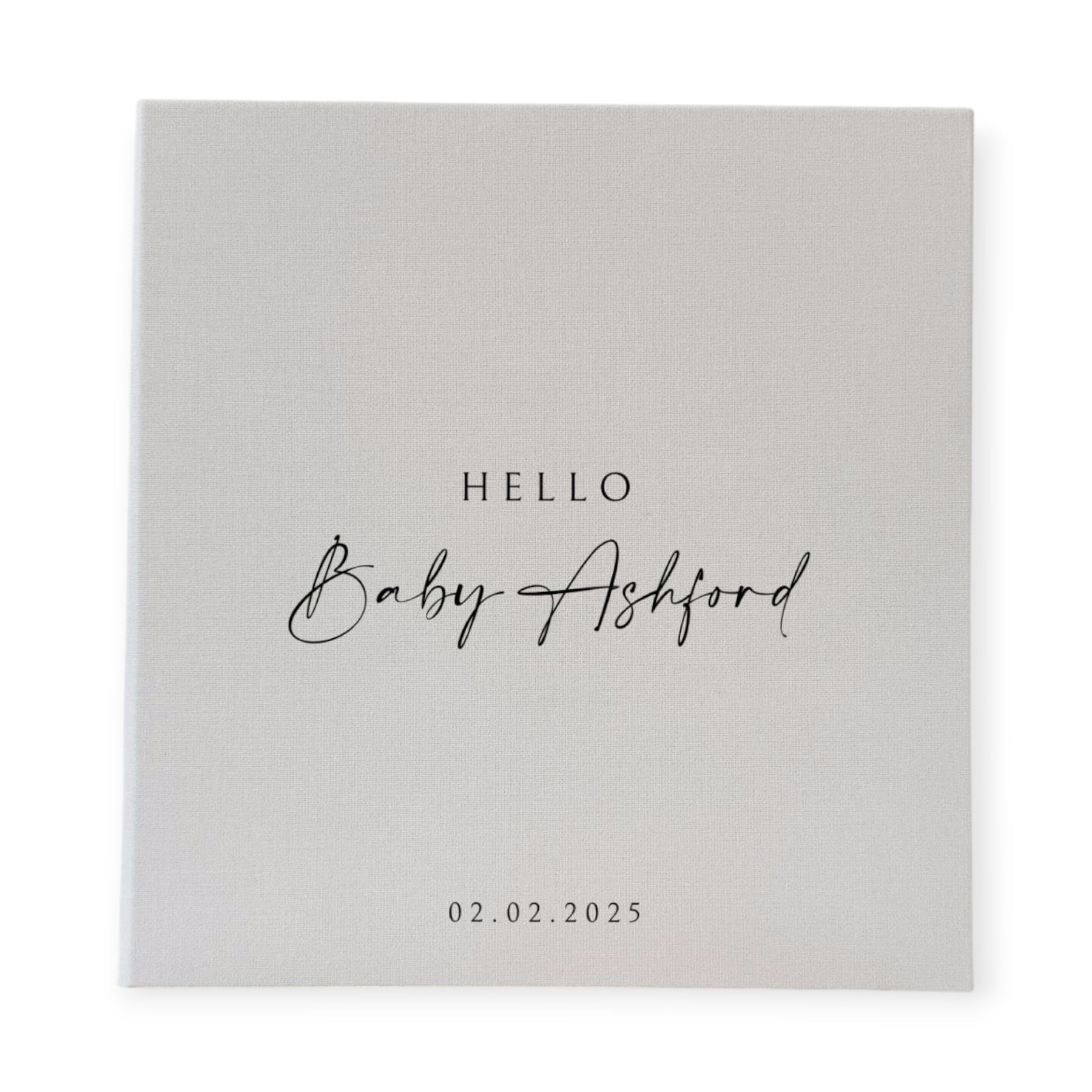 This custom baby photo album is a self adhesive album that features Design 54, handmade to display and protect your little one’s early memories. Each page includes a clear plastic overlay that secures your photos while keeping them safe from dust and fingerprints. The linen cover feels soft but sturdy, giving the album a calm, timeless look that suits any nursery or baby shower theme.