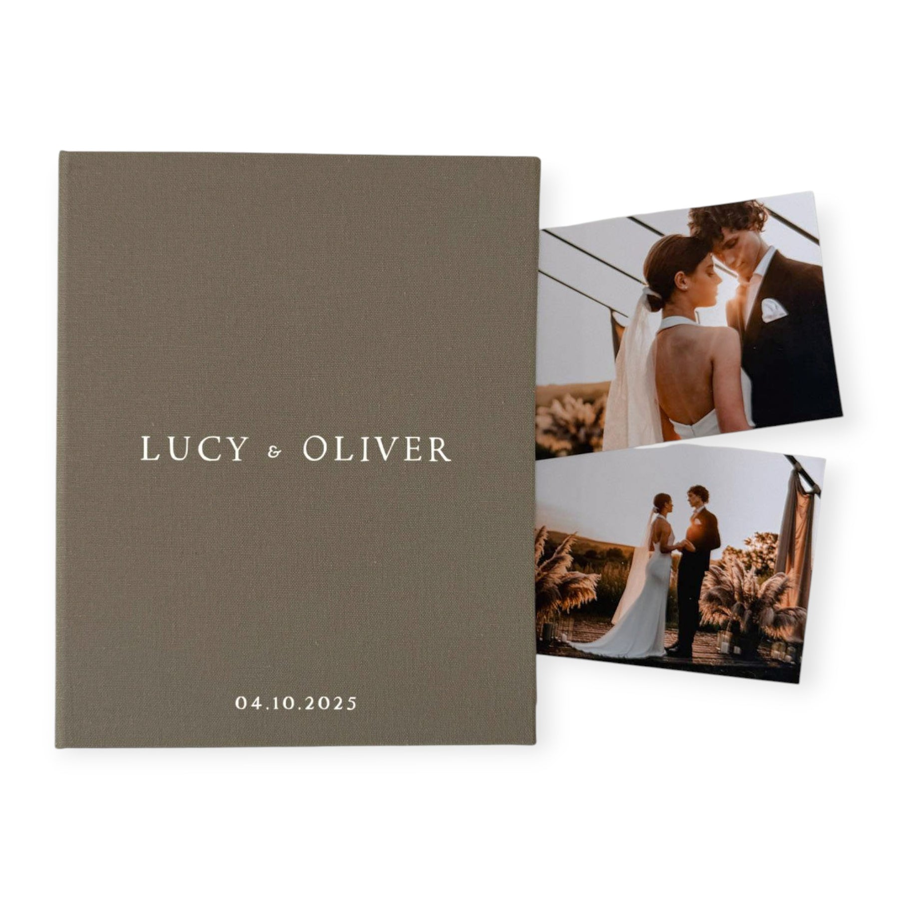 This custom wedding photo album is a slip in album that features Design 03, created to protect and display your most cherished wedding photos. Each page holds your images securely in clear pockets that make it easy to insert and organise your prints. The linen cover feels soft yet strong, offering a refined finish that suits any wedding style or decor.