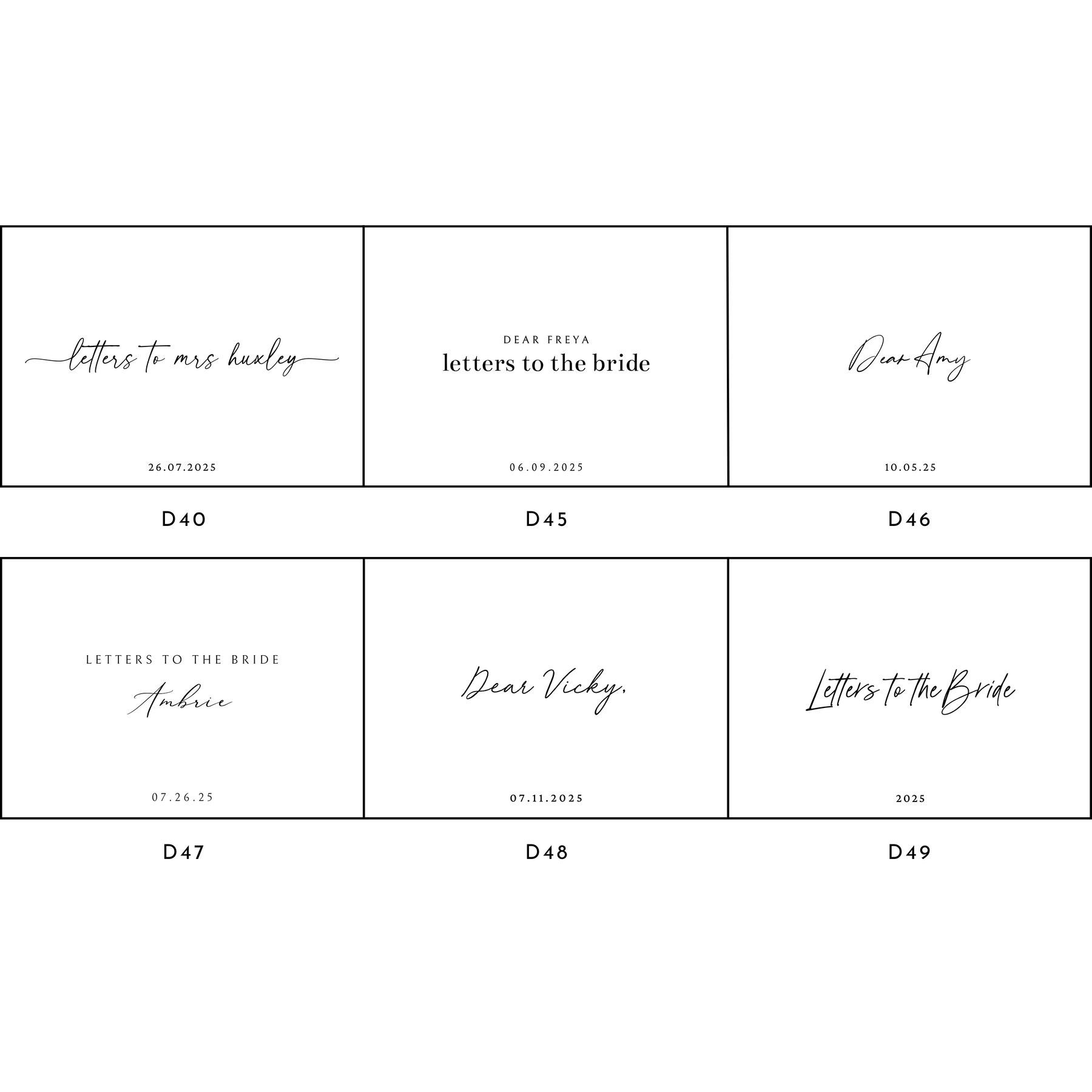 This custom letters to the bride bundle includes everything you need to create a beautiful and heartfelt keepsake for the bride-to-be. Each book is handmade in your chosen linen colour and paired with envelopes and accessories that make it easy for guests to share their love and advice.