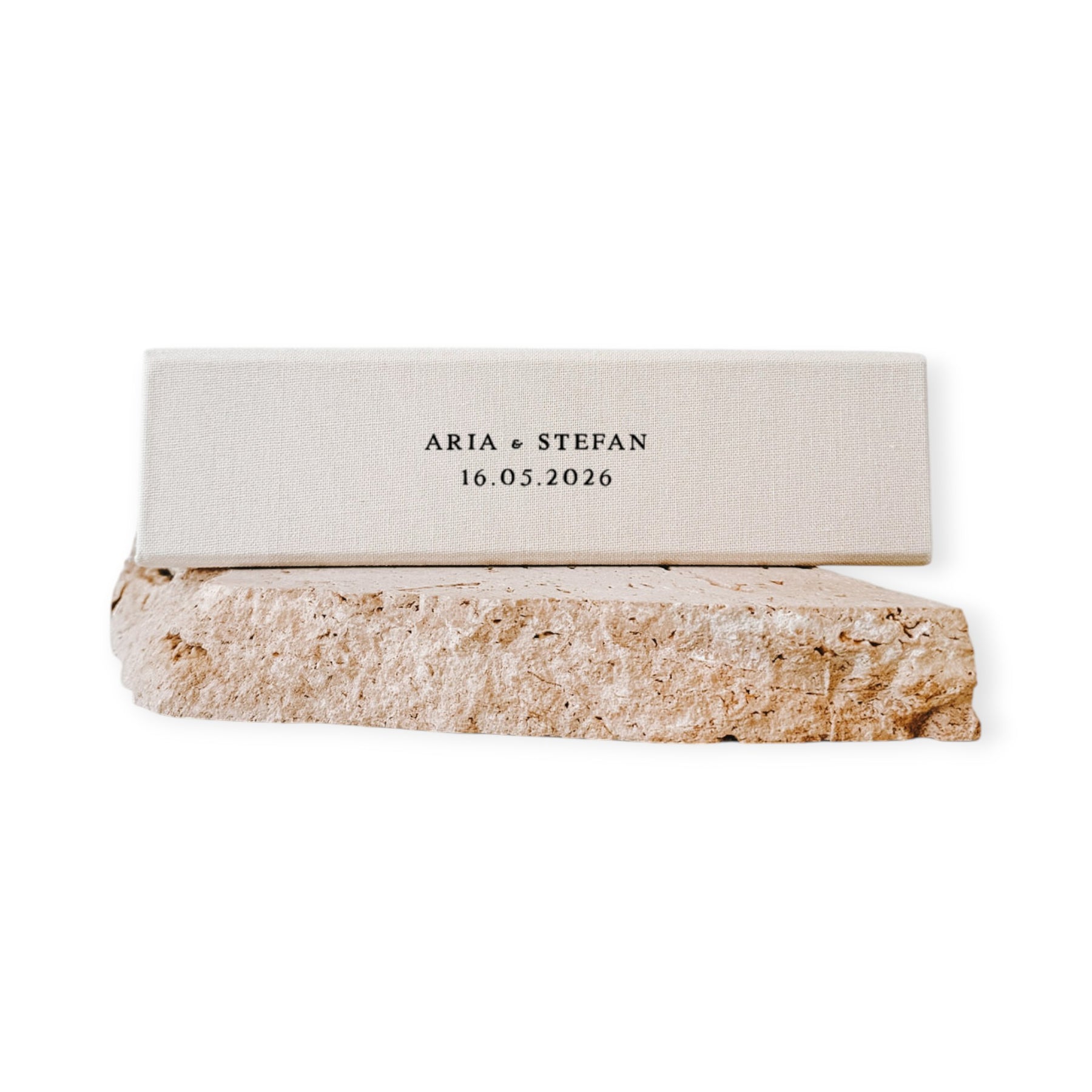 - Handmade linen cover with a smooth premium finish that protects your photos.